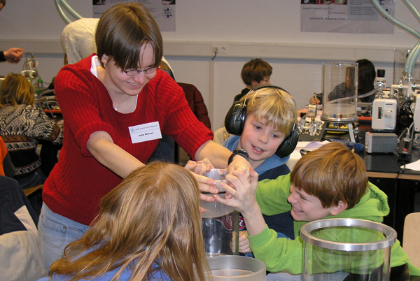 Im DESY jagen Wissenschaftler kleinsten Teilchen nach und stellen die fundamentalen Fragen der Physik. Physikalische Erkenntnisse anschaulich werden zu lassen, ist das Anliegen der Schülerlabore beim DESY.An beiden Standorten, in Hamburg und Zeuthen, können Schulklassen in einem Vakuumlabor experimentieren. In Hamburg gehen Schüler außerdem dem Phänomen der Radioaktivität nach und lernen dabei Eigenschaften dieser ionisierenden Strahlung kennen. Im Quantenlabor arbeiten Schülerinnen und Schüler der Oberstufe an Grundlagenversuchen der Quanten physik und untersuchen Teilchen- und Welleneigenschaften von Licht und Materie.Woraus kosmische Strahlung besteht und wie sie erzeugt wird,das erforschen Jugendliche mit Hilfe moderner Mess- und Analysemethoden der Teilchenphysik. Bei diesem Projekt arbeiten die Jungforscher allein oder in kleineren Gruppen intensiv über einen längeren Zeitraum (von 1 Woche bis zu 2 Jahren) im Labor und haben die Gelegenheit, den Forscheralltag aus erster Hand zu erleben.
