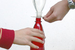 Für den Versuch benötigst du zwei Flaschen, ein Stück Karton, Lebensmittelfarbe sowie heißes und kaltes Wasser.