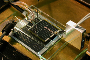 - Die beiden Einzelzellen werden zurzeit im Labor noch mechanisch zu einer Tandemzelle aufeinander gestapelt. Foto: HZB/M. Schmid