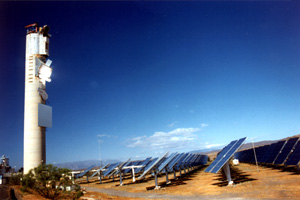 Nun hat auch eine solar-hybride Gasturbine den Betrieb aufgenommen. DLR-Forscher haben die Test-Anlage in Zusammenarbeit mit elf internationalen Partnern im EU-Projekt Solhyco entwickelt und jetzt auf dem Solarturm CESA-1 montiert. Ein Spiegelfeld lenkt die Sonnenstrahlung auf drei Solarreceiver, die die Kompressorluft der 250 Kilowatt-Gasturbine stufenweise auf 800 Grad Celsius erhitzen. Nur bei Bedarf schaltet sich die mit Biodiesel betriebene Brennkammer der Turbine dazu, so dass unabhängig von Tageszeit und Witterung elektrische Energie erzeugt wird. „Diese Aufgaben sind sehr anspruchsvoll gewesen“, sagt Pitz-Paal, „doch unsere Wissenschaftlerinnen und Wissenschaftler haben sie schließlich gelöst.“