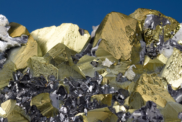 - Kristallaggregat von Kupferkies, Bleiglanz, Zinkblende und Kalkspat. Bild: HZDR