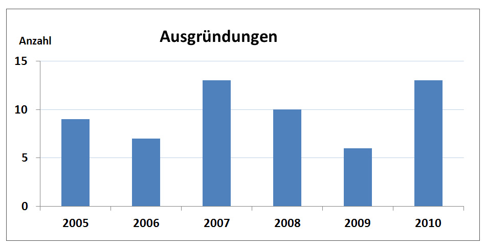 Mit den 13 neuen Ausgründungen sind zwischen 2005 und 2010 insgesamt 58 spin-offs aus Helmholtz-Zentren entstanden. Die technologiebasierten Unternehmensgründungen stellen eine besonders werthaltige Form des Wissens- und Technologietransfers dar, denn neben der Überführung von Forschungsergebnissen in die Anwendung werden auch neue Arbeitsplätze geschaffen. Die Ausgründungen nutzen dabei auf der Grundlage von Lizenz- und Nutzungsvereinbarungen Know-How, Patente und teilweise auch die besondere Forschungsinfrastruktur der Helmholtz-Zentren. Teilweise gehen die Helmholtz-Zentren Unternehmensbeteiligungen ein, wodurch sich für beide Seite Vorteile ergeben können: Verrechnung von Lizenz- und Nutzungsgebühren sowie ein Reputationsgewinn auf der spin-off-Seite, Beteiligung an der unternehmerischen Entwicklung auf der Seite des Forschungszentrums.