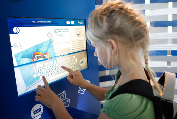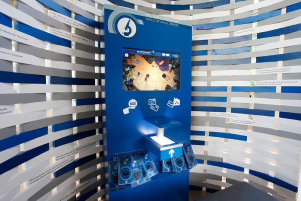 Kern des Moduls ist eine Mikroskopierstation. Hier können die Besucher nicht nur Aufnahmen aus der aktuellen Forschung betrachten, sondern auch eigene Dinge unter das Mikroskop legen. Die Mikroskopie-Bilder können sie anschließend als E-Card per Email verschicken, damit auch Freunde und Familie am Museumsbesuch teilhaben.