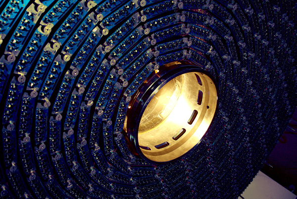 - Driftkammer Argus Detektors: Mit dem ARGUS Detektor wurden die Teilchenreaktionen am DORIS-Beschleuniger gemessen. In den 1970er Jahre verfolgten die Forscher an DORIS die Spuren der Quarks. Bild: DESY
