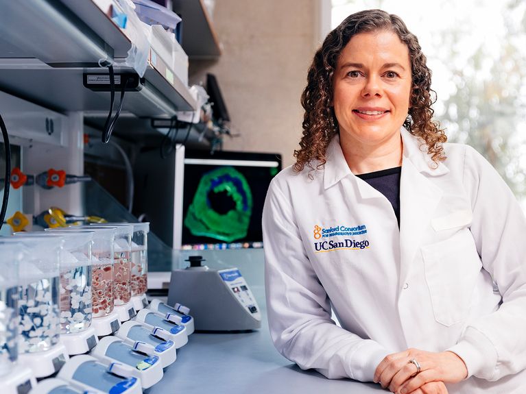 Mit Forscherinnen und Forschern in Deutschland arbeitet Karen Christman schon länger zusammen. Sie ist Visiting Fellow der Stiftung Charité am Max Delbrück Center (MDC) – und jetzt ist sie mit dem Humboldt-Forschungspreis ausgezeichnet worden. „Ich komme immer wieder nach Deutschland, um dort zu forschen – im Sommer plane ich, drei Monate am Stück in Berlin zu sein“, sagt sie. Am MDC arbeitet sie zusammen mit anderen Wissenschaftlern mit Methoden der räumlichen Transkriptomik: Das sind molekularbiologische Verfahren, mit denen sie die Genexpression in Geweben analysieren kann, und zwar direkt in ihrem räumlichen Kontext. „Wir sehen also nicht nur, welche Gene aktiv sind, sondern wo genau in einem Gewebe sie aktiv sind“, erklärt sie. Für ihre Forschung an den Biomaterialien hofft sie dabei auf die nächsten entscheidenden Durchbrüche.